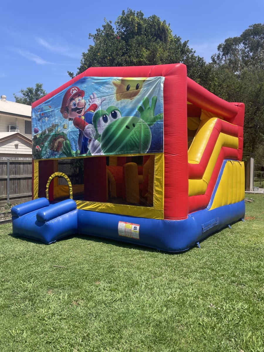 Bring the Mushroom Kingdom to your next party with the 5x5 Super Mario Obstacle Slide. This colourful, action-packed inflatable blends a slide, obstacles, a basketball hoop and a rain/shade cover into a single 5x5m unit. Perfect for kids' parties, school fetes and community events. Book Jumping Castle Hire 5x5 Super Mario Obstacle Slide in Sydney for safe, memorable fun. ππΉοΈ