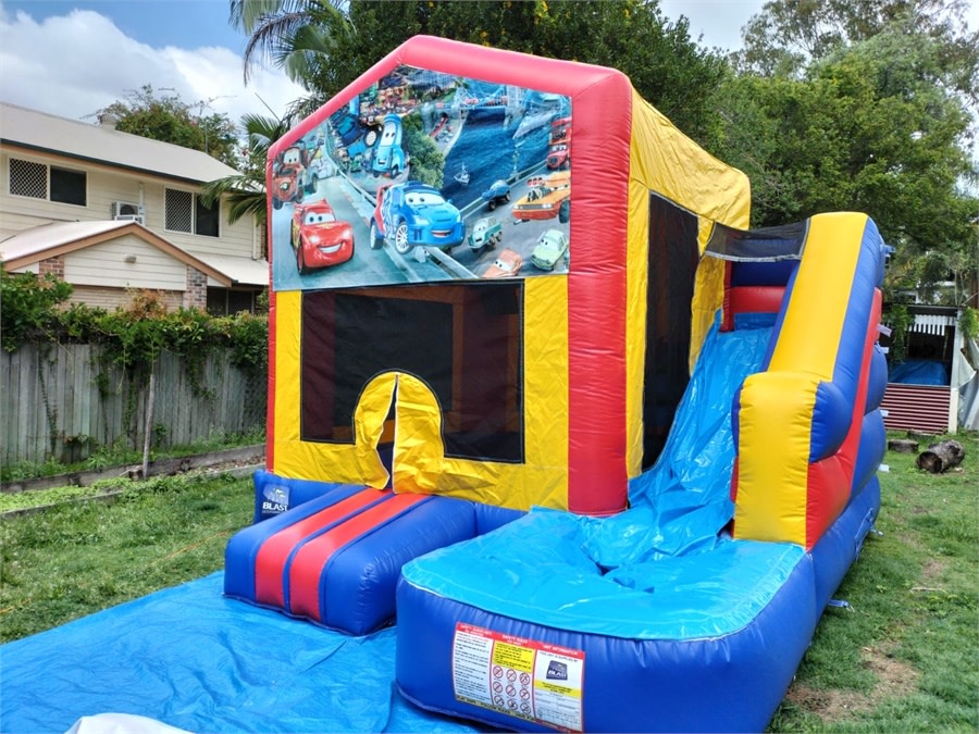 Looking for Jumping Castle Hire 4x5 Slide Cars Theme in Sydney? This Cars-themed 4x5m jumping castle is ideal for kids' parties, school events and backyard fun. It features a big jumping area, an inflatable slide, a basketball hoop and a rain/shade cover. Safe. Bright. Fast to set up. π